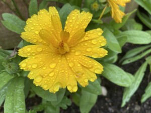 Hi All š My latest post for Leigha’s Sunny Sunday. This Pot Marigold was a bright splash of yellow, even on a rainy day. This is also known as Scotch Marigold, Common Marigold, ruddles & Mary’s Marigold