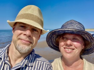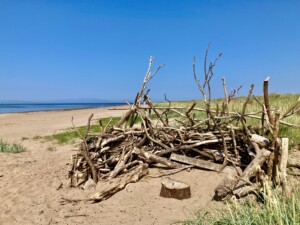 Hi All š My entry for Debbie’s Six Word Saturday. Susan and I enjoying a walk on South Beach in Troon while keeping the sun off.