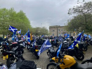 Hi All 👋 My latest post for Debbie’s OWS: Busy. Before the off; 25,000 – 30,000 Scottish Independence Supporters, of all nationalities & walks of life, gather at Kelvin Grove Park at 1130 Sat 6th May (Pic courtesy of my wife, Susan). Yes Bikers gathered to greet marchers at Glasgow Green after 2 mile march