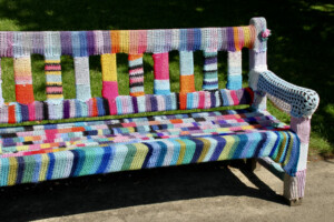 Hi All 👋 My entry for Becky’s July TreeSquare. Yesterday, Becky led the way with a yarn bombed tree; this reminded me of a “yarn bombed” bench at The Glasgow Botanic Gardens. My justification for including this in TreeSquares is as follows — the bench is made of wood (comes from a tree), it’s almost