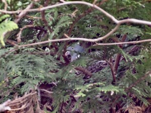 Hi all This delightful new couple, Jim & Jimima (a pair of ring doos), have just moved into a newly built residence in the hedge at the bottom of the garden. I was later triimming the hedge & realised I was being watched