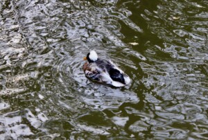I didn’t know that geese ate grass, but this lot were lined up with their parent, cropping the grass as they went; almost straight into the loch.
